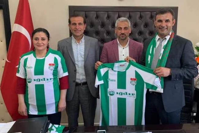Iğdırspor kulüp başkanı Metin Ova ve Teknik Direktör Erol Aydemir Iğdır Belediye Eşbaşkanları Yaşar Akkuş ve Eylem Çelik'i ziyaret ederek Iğdırspor forması ve atkısı hediye ederek hayırlı olsun dilekleri ile başarılar diledi.