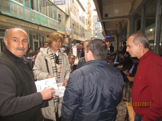 CHP heyeti ile birlikte Iğdır'a gelen CHP Sarıyer eski ilçe başkanı ve Eski KASİAD Başkanı Hemşehrimiz Süreyya CİNİK Iğdırlı esnafa "Hayır" broşürlerini dağıttı.