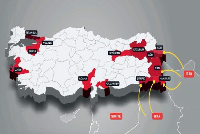"X" maddesinin sınır kentlerine sevkiyatının İran ve Irak'tan olduğu belirtiliyor.