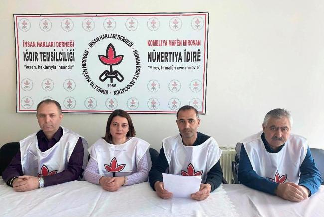 İnsan Hakları Derneği (İHD) Merkezi Hapishane Komisyonu, Antalya Yüksek Güvenlikli Hapishanesi’nde tutulan üç mahpusun süresiz açlık grevine dikkat çekmek amacıyla şube ve temsilciliklerde eş zamanlı basın açıklaması yaptı. Iğdır'da açıklamayı İHD Iğdır İl Temsilcisi Musa Filizkıran okudu