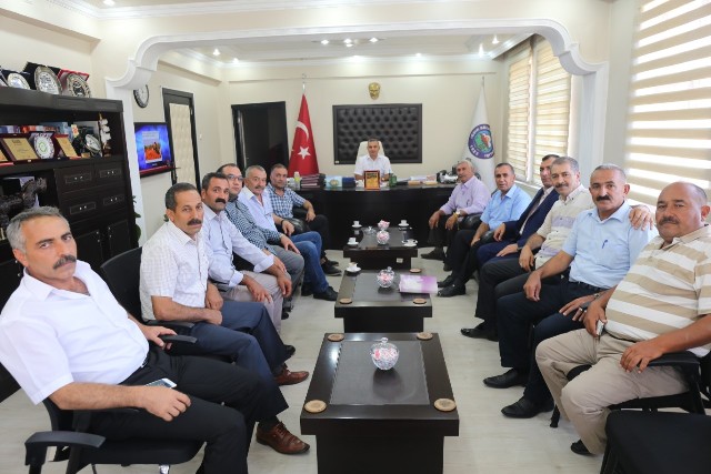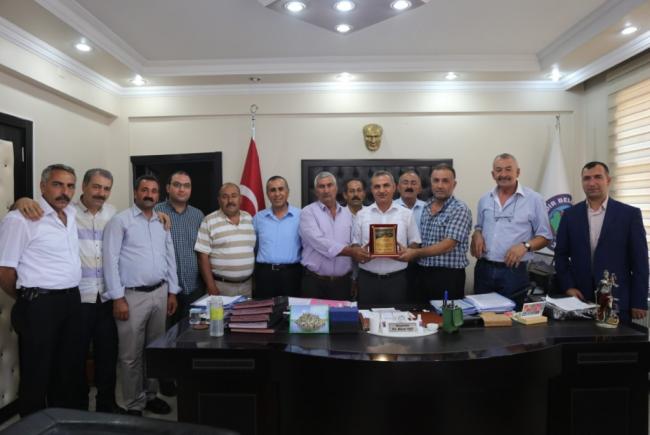 Iğdır merkeze bağlı 14 mahalle muhtarı, Başkan Yikit'i makamında ziyaret ederek yapılan hizmetlerden duydukları memnuniyeti dile getirerek teşekkür plaketi takdim ettiler.