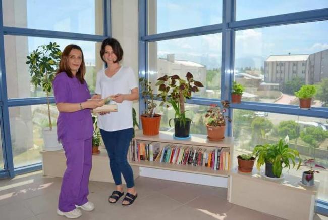 Oluşturulan kütüphane sayesinde hastalar ve yakınları, kitap alıp odalarında okuyabiliyorlar.