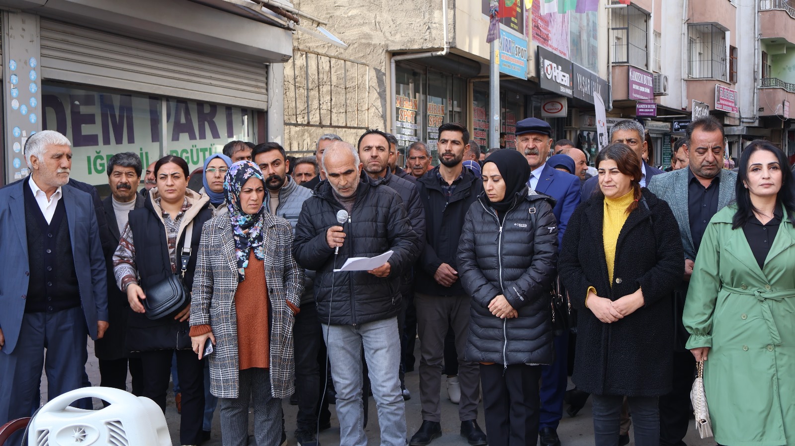 DEM Parti, DBP Îdir il örgütleri ve TJA öncülüğünde kayyım için basın açıklaması gerçekleştirildi. DEM Parti il binası önündeki açıklamaya, belediye eşbaşkanlarının yanı sıra çok sayıda kişi katıldı.