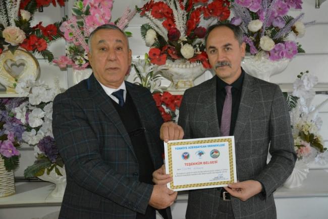 Türkiye Azerbaycan Dostluk Dernekleri federasyonu Genel Başkan yardımcısı ve Iğdır Azerbaycan Evi Derneği başkanı Serdar Ünsal, Türkiye Azerbaycan kardeşliğine destek veren görev yaptığı süre içinde herkesin sevgi ve saygısını kazanan MHP Eski il başkanı Av.Özcan Günsoy’a teşekkür belgesi verdi.