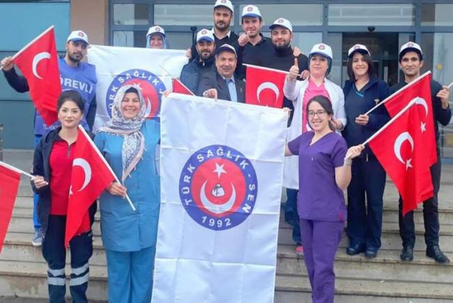 Personelin katkıları ile elde edilen döner sermayelerin emekliliğe yansıtılması, oranlarının yükseltilmesi, hakkaniyet ölçüsünde personele dağıtılması hakkında Türk Sağlık Sen Iğdır temsilciliği, Iğdır Devlet Hastanesi önünde basın açıklaması yaptı.