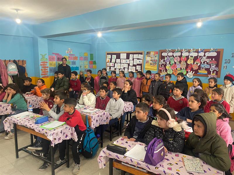 Eğitim ile öğrencilere evsel su tüketiminin azaltılması ve su verimliliği konularında sunum yapıldı, videolar gösterildi ve öğrencilere ikramlarda bulunuldu. Haber: Fırat Akkuş