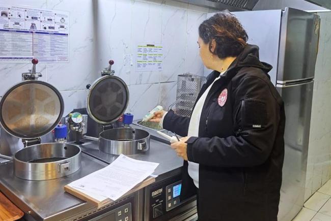 Termometre cihazı ile kızartma yağı sıcaklığı ve polarimetre cihazı ile polar madde değerlerine bakılarak mevzuata uygun olamayan yağlardan numuneler alınarak polar madde ve asit sayısı değerlerinin analiz edilmesi için çalışmalar yapılmaktadır. Haber: Fırat Akkuş