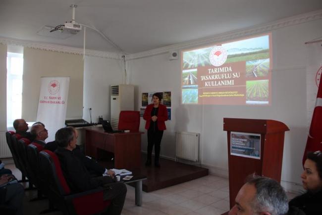 İl Tarım Müdürlüğü Tarımsal Altyapı ve Arazi Değerlendirme Şube Müdürü Lilifer TURAN tarafından, tarımsal sulamada suyu etkin ve verimli kullanılmasının, basınçlı sulama sistemlerinin, yağmurlama ve damla sulamanın önemi hakkında açıklayıcı sunum ve bilgilendirmeleri ile devam etti. Haber: Fırat Akkuş