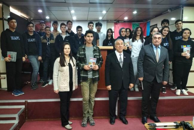 “Yöresel Yazar ve Şairlerle Buluşma” etkinliği kapsamında Eğitimci Gazeteci Yazar Serdar Ünsal, Haydar Aliyev Fen lisesinde Ermenilerin yaptığı soykırımları anlattı ve “Yüreğim İrevan’da Kaldı” romanını tanıttı.